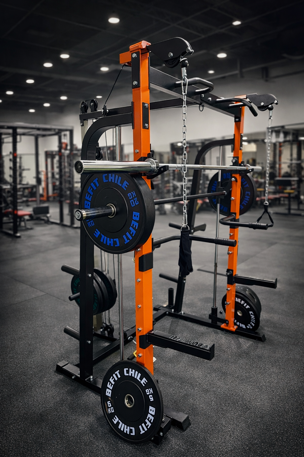 4. Jaula Smith + Barra Libre + Discos Bumpers (150 kg en discos + 20 kg de barra) – $1.259.990